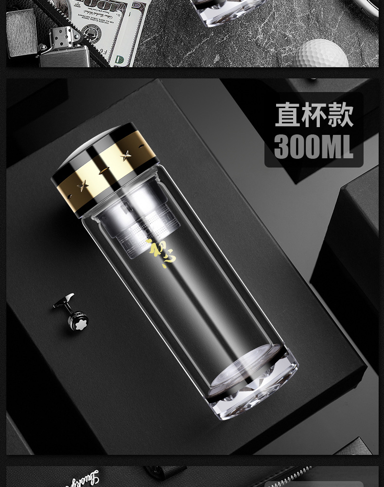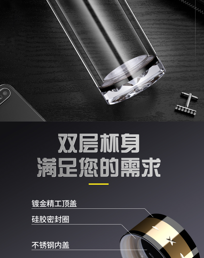 雙層水晶玻璃杯商務禮品水杯子廠家直銷定制logo茶杯