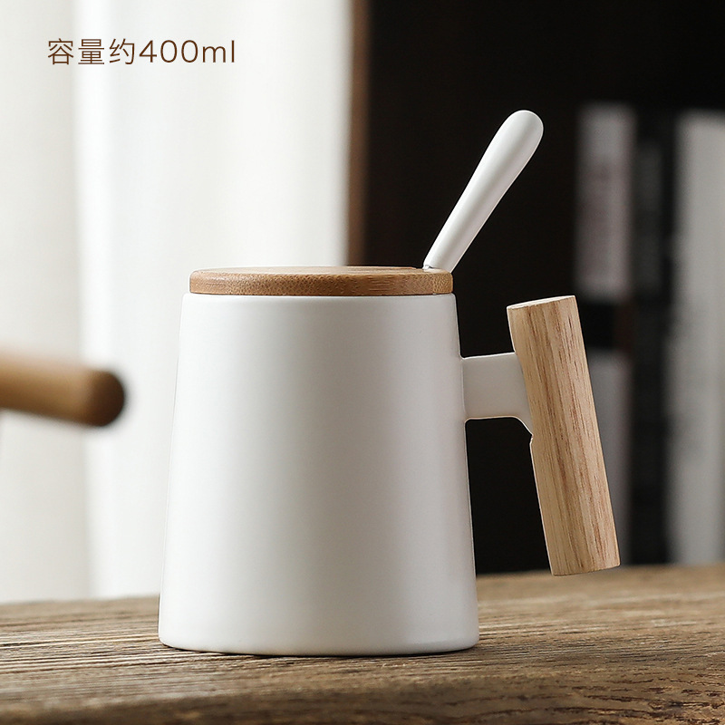 木手柄木把杯 陶瓷馬克杯禮盒套裝創(chuàng)意情侶水杯帶蓋 簡(jiǎn)約咖啡杯